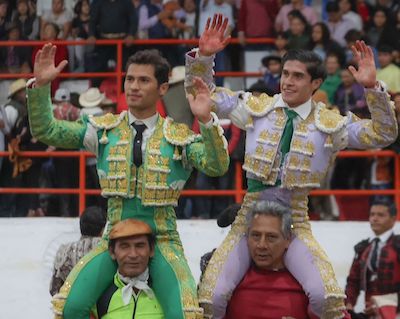 Al finalizar el festejo los dos matadores salieron en hombros ante el entradón en tierras hidalguenses.