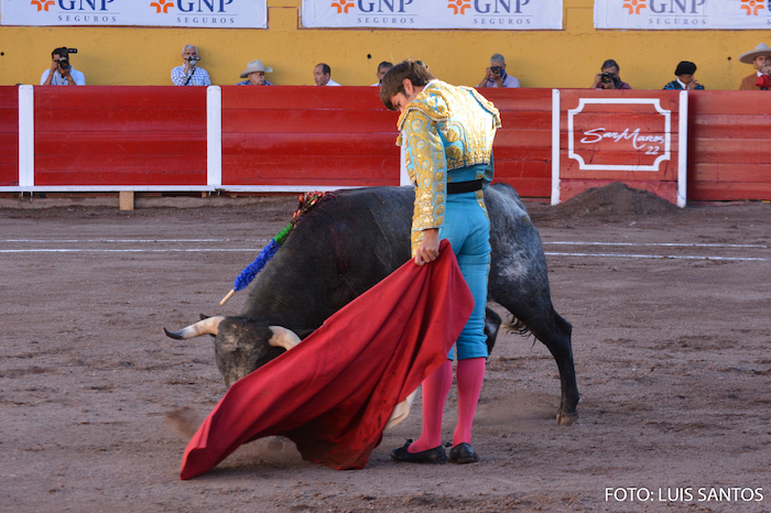 El debutante en la plaza no tuvo mucha opción en su primero. Destacar su gran manejo de capote, lo que hizo que ‘cayera de pie’ con la afición hidrocálida, más con muleta y tras algunos pases iniciales el novillo se lo llevó por delante propinándole un fuerte golpe en la entrepierna que lo mandó a la enfermería para ya no volver, siendo su ejemplar pasaportado por José Miguel Arellano.
