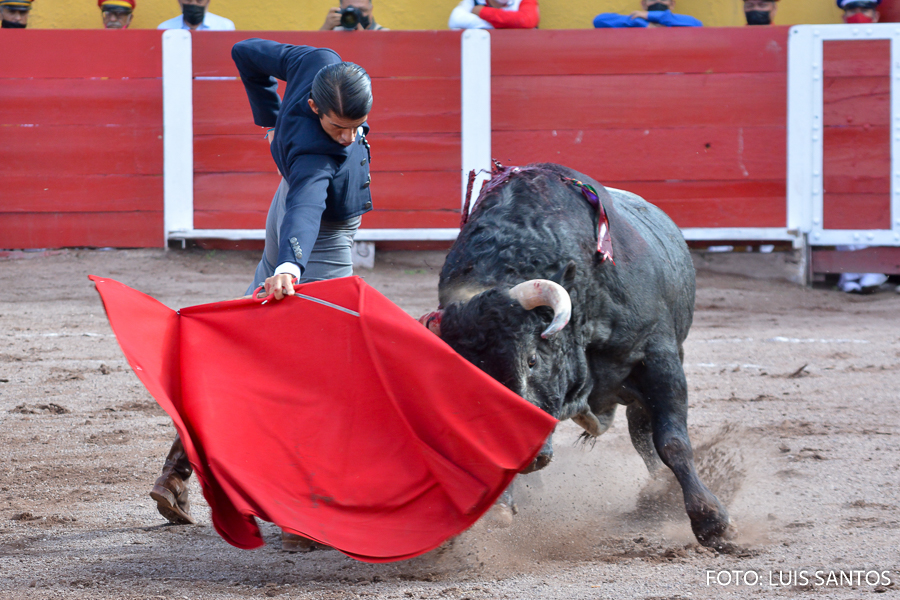 Con la muleta le pegó una primera tanda por alto muy quieto y fino para pasar a dar tandas largas por derecha e izquierda. Ya con el toro bien ‘dominado’ se dio el gusto de torear mirando al tendido y se le notaba claramente su gusto por lo hecho, y si, cuando se hacen las cosas con el corazón quienes las vemos lo sentimos también. Estocada trasera sin embargo efectiva culminaron el corte de dos orejas. Luis David, tocayo, si me lees por favor, atiende el consejo dado líneas arriba y pasea las orejas con orgullo, con personalidad, engrandece tu faena con el triunfo bien ganado y bien paseado, y ya después, al pasar a retirarte del ruedo, manda las orejas al respetable que igual las agradecerán.