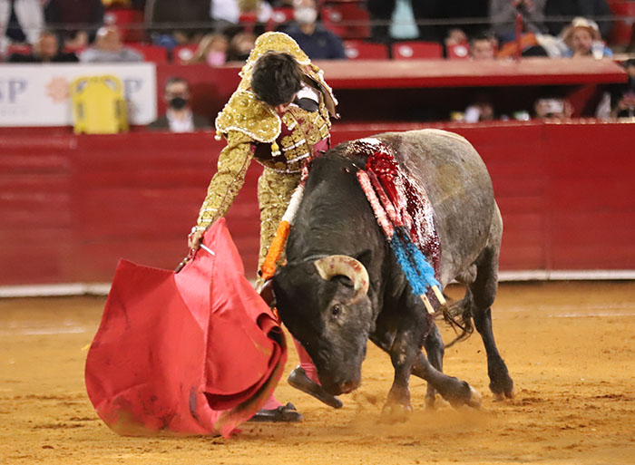 Y justo cuando tenía al público en un puño vino el pinchazo, sin embargo, ha sacado arrestos para continuar el duelo, sabedor de que en esos momentos de angustia hay uno que Manda. Y ofreciendo los muslos por carnada puso el mismo panorama: El drama. Estocada en la Cruz que desde el palco de la autoridad pasaron por alto. Que lamentable.