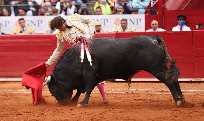 Así logró paulatinamente sobando hasta encelar tras cuatro series alternadas; el fondo lo extrajo en la parte final con una Trincherilla por dentro haciéndolo Romper en dos derechazos y uno de vuelta entera. “No hay toro, pero hay torero” se escuchó desde el tendido. Y en un palmo de terreno se ha recreado toreando en torno a su cuerpo. Sello propio al matar envainando en el sitio. Oreja.